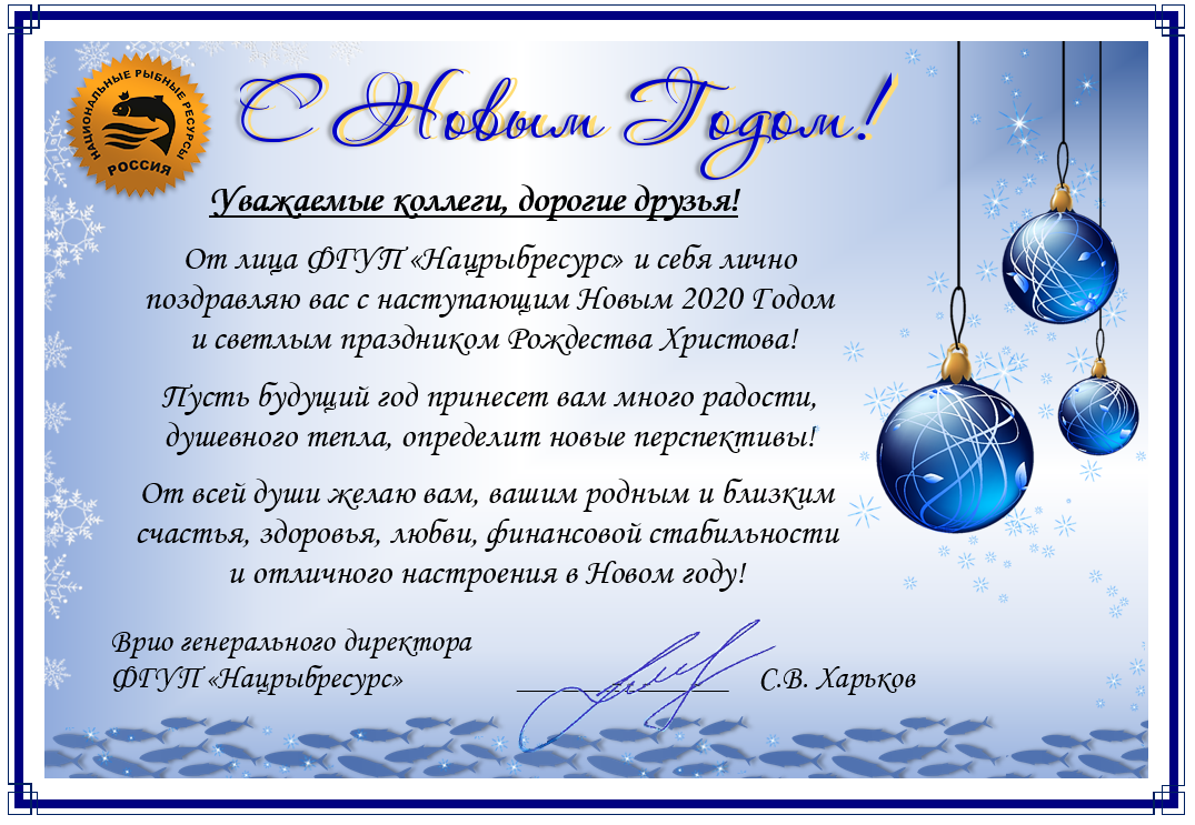 Поздравление с наступающим Новым 2020 Годом от Врио генерального директора ФГУП "Нацрыбресурс"
