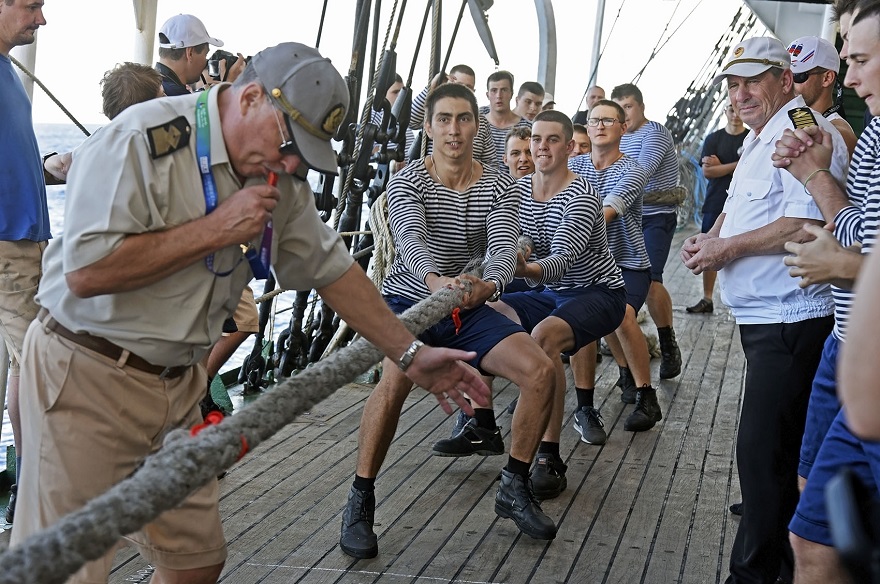 В длительных переходах ребята всегда находят себе занятие по душе. Николай Зорченко в шутку отметил, что мероприятий на борту даже с избытком. Редкий день обходится без каких-либо активностей: то вечер гитарной музыки, то судовая спартакиада.