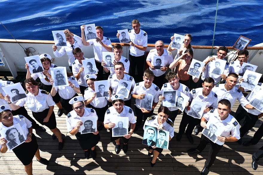 Главный день кругосветной экспедиции, посвящённой 75-й годовщине Победы в Великой Отечественной войне, экипаж и курсанты встретили в водах Южно-Китайского моря.