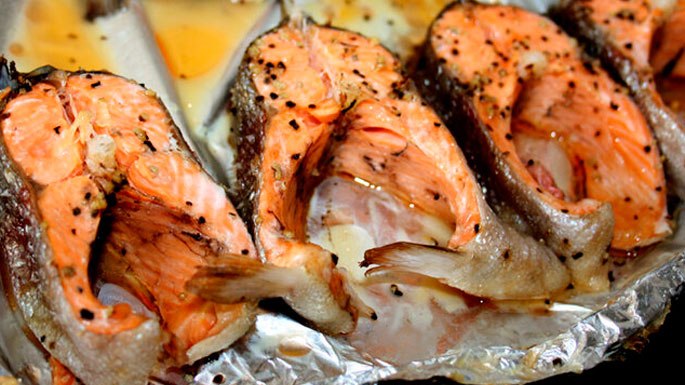- Таким образом, подготовленная рыба заворачивается в фольгу, причем так, чтобы из нее не вытекал сок.
