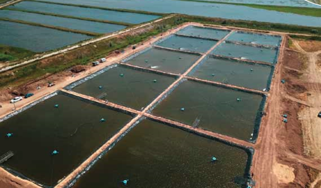 Так называемые интенсивные пруды для выращивания креветок, в которых вода не только насыщается кислородом, но и циркулирует по искусственно создаваемому течению.