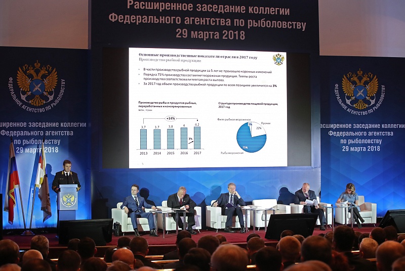 На коллегии были рассмотрены итоги работы отрасли за 2017 год, а также задачи, стоящие перед российским рыболовством на ближайшую и долгосрочную перспективу.