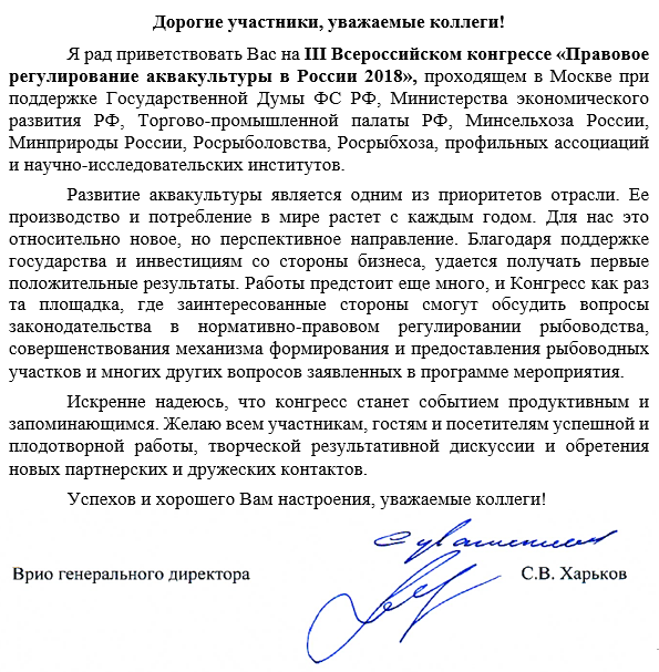 ФГУП «Нацрыбресурс» поддержал III Всероссийский Конгресс "Правовое регулирование аквакультуры в России 2018"