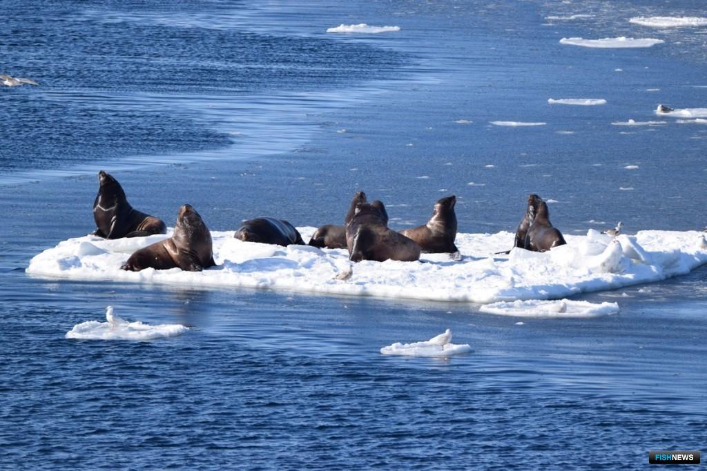 Сивучи на льдине. Фото Ивана Блохина, КамчатНИРО