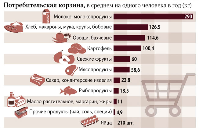 По рекомендации Минздрава, в среднем россиянину необходимо употреблять около 22 кг рыбы в год. При определении новой планки правительству стоит отталкиваться именно от этой цифры, считает председатель правления Международной конфедерации обществ потребителей Дмитрий Янин. С учетом ранее высказанных Минтрудом предложений по увеличению доли фруктов и овощей в «корзине» рост доли рыбы выглядел бы логичным шагом по улучшению качества питания россиян.