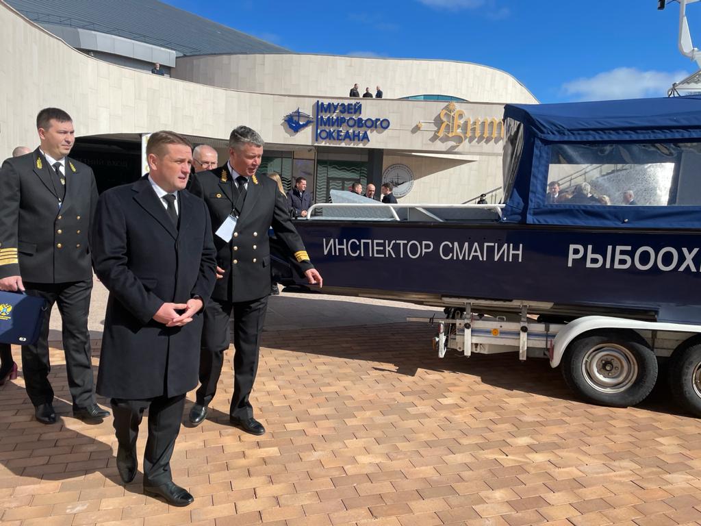 На площадке была представлена новая техника, которой были оснащены инспекторы рыбоохраны Росрыболовства в прошлом году, – автомобильный и водный транспорт. Представитель Костромского судостроительного завода рассказал главе Агентства о характеристиках новых катеров, их преимуществах.