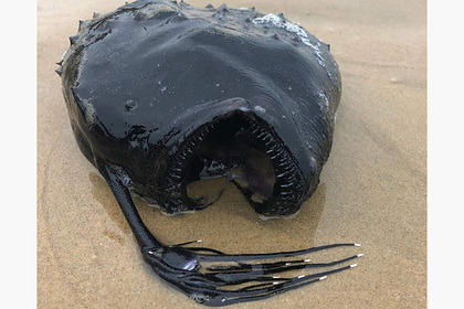 Рыба черного цвета с очень острыми зубами и «удочкой» на голове, служащей глубоководным обитателям фонарем, лежала с разинутой пастью на берегу охраняемой зоны государственного парка Кристал-Коув в Лагуна-Бич. По словам специалистов, скорее всего, это рыба-футбольный мяч (Footballfish). Они добавили, что ее очень редко можно увидеть на поверхности океана, поэтому неизвестно, как рыба оказалась на берегу.