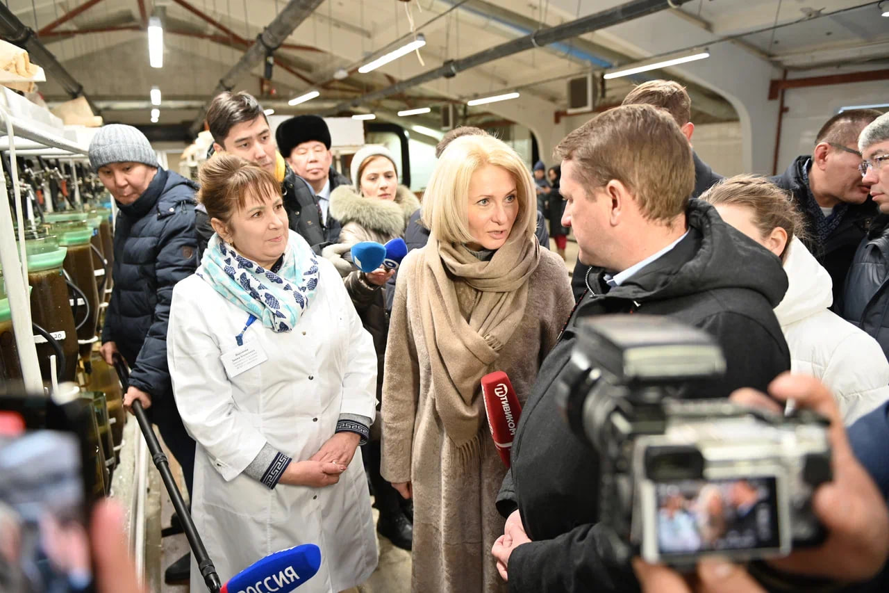 Заместитель председателя Правительства России Виктория Абрамченко в сопровождении руководителя Росрыболовства Ильи Шестакова и главы Республики Бурятия Алексея Цыденова посетила Большереченский рыбоводный завод (Республика Бурятия, Кабанский район).