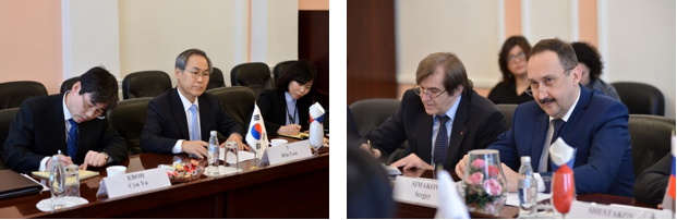 У Юн Гын поблагодарил за организацию встречи и подчеркнул динамичное развитие и тесное взаимодействие России и Республики Корея, в том числе на самом высшем уровне, отметив встречу глав государств на площадке Третьего Восточного экономического форума в сентябре 2017 года.
