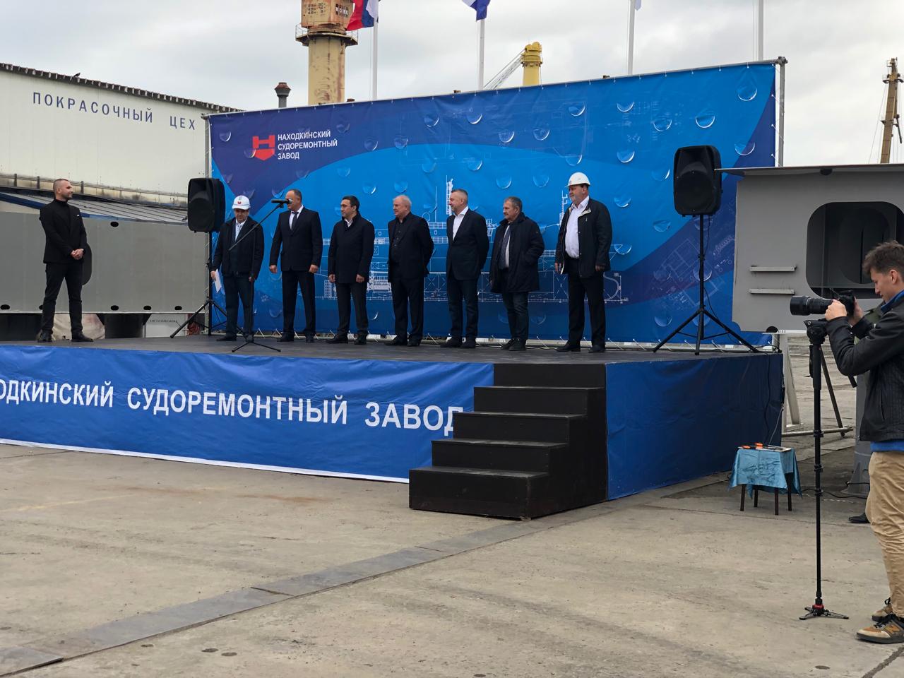 Участие в торжественной церемонии закладки, состоявшейся 25 октября, приняли участие гендиректор АО «НСРЗ» Сергей Старовойтов, гендиректор ООО «Амуррыбпром» Алексей Голованов, председатель Ассоциации рыбохозяйственных предприятий Приморья Георгий Мартынов, глава Находкинского городского округа Тимур Магинский, начальник Приморского отделения Российского морского регистра Андрей Чураев, руководитель Приморского филиала ФГУП «Нацрыбресурс» Валерий Паев.