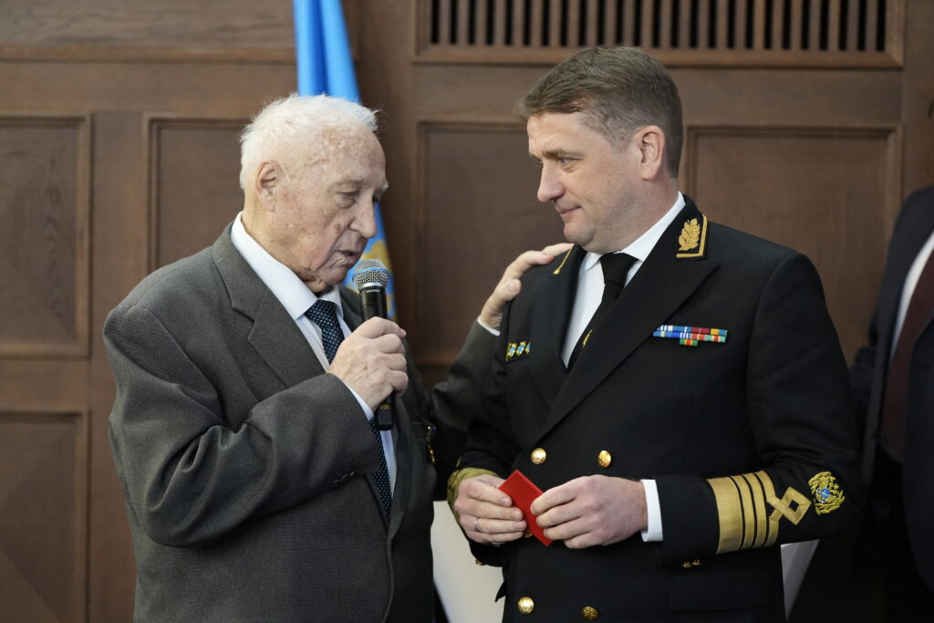За многолетний добросовестный труд в рыбохозяйственном комплексе глава Росрыболовства Илья Шестаков вручил руководителю Росрыбхоза Василию Глущенко медаль «Ветеран рыбного хозяйства России».