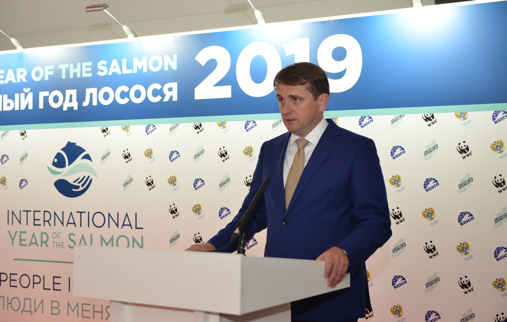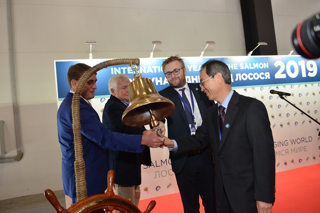В церемонии открытия Международного года лосося в третий день Форума приняли участие заместитель Министра сельского хозяйства – руководитель Росрыболовства Илья Шестаков, президент НАСКО Йоаннес Хансен, президент НПАФК Суам Ким, ФГБНУ «ВНИРО» Кирилл Колончин и представитель Университета острова Ванкувер, инициатор учреждения Года лосося доктор Ричард Дж. Бимиш.