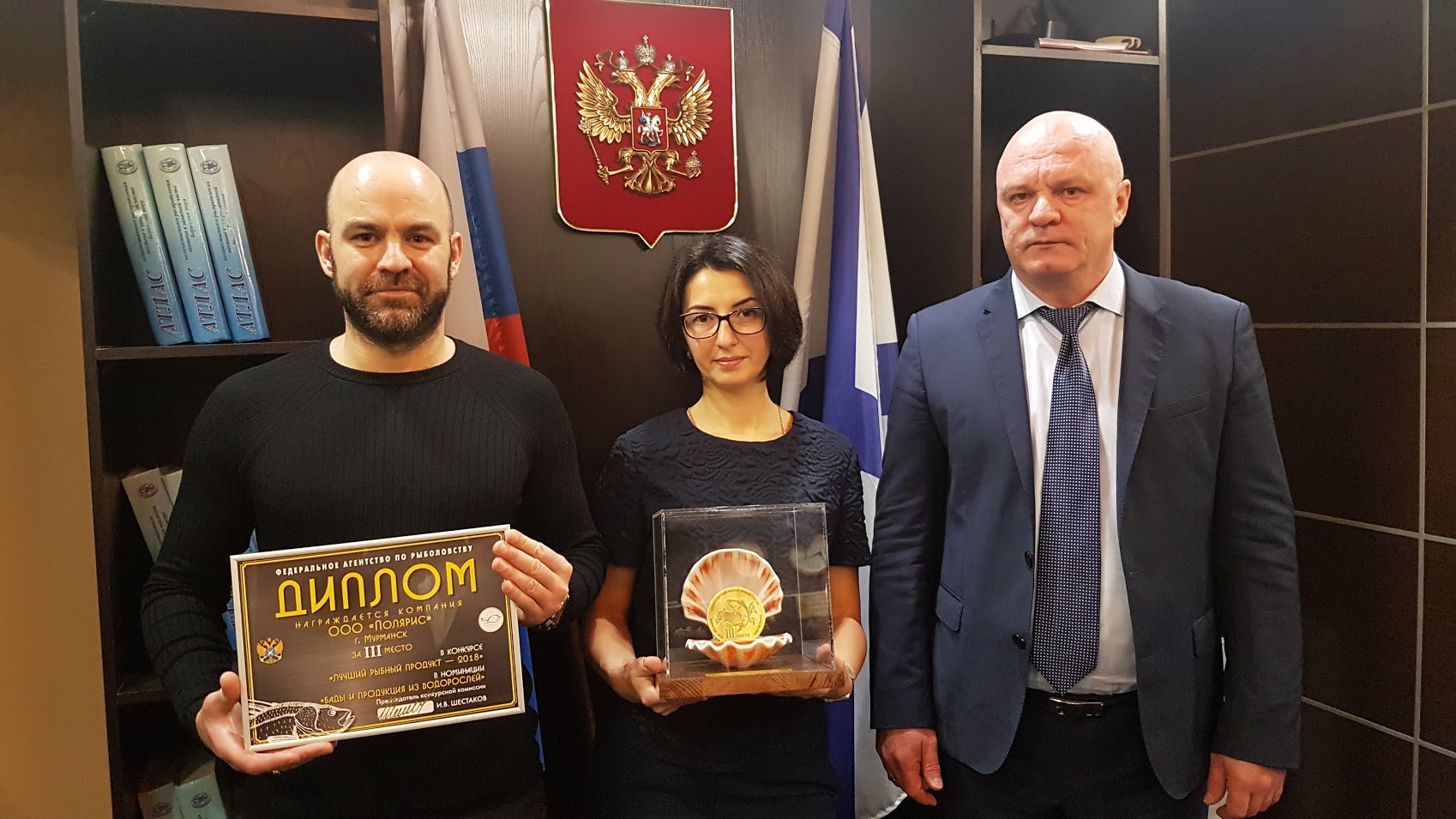 Приз вручил врио генерального директора «Нацрыбресурса» Сергей Владимирович Харьков. Он поблагодарил ООО «Полярис», в лице коммерческого директора предприятия Ежовой Ирины Сергеевны, за участие в проведённом конкурсе, и за продукцию отличного качества поставляемую на российский рынок.