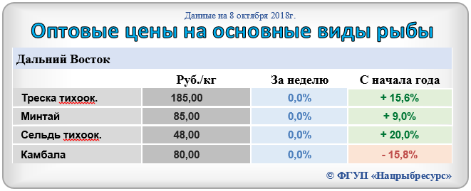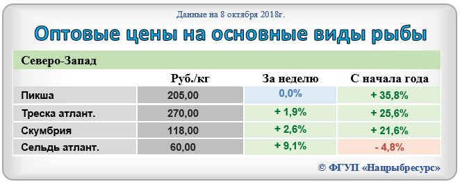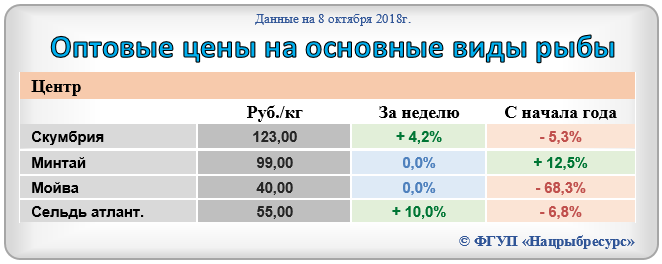 Мониторинг обзора ситуации на рынке рыбы:08 октября 2018 года (ФГУП «Нацрыбресурс»)