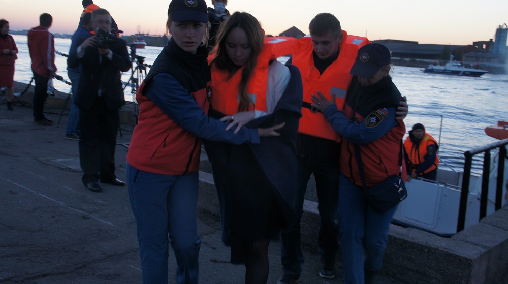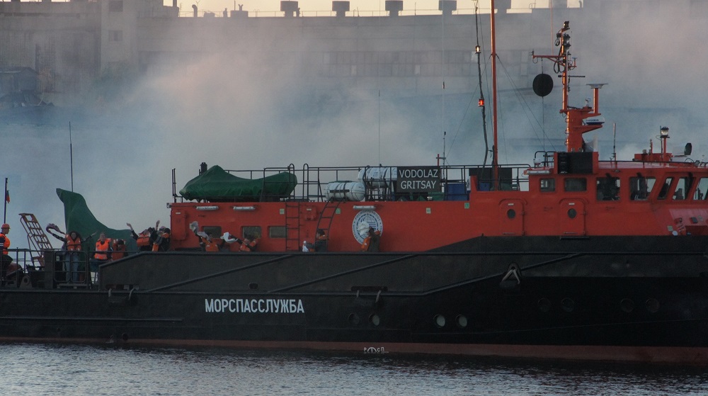 После возникновения учебного пожара на столкнувшемся теплоходе в акваторию канала вошло пожарное судно «Игорь Прокопчик», специально оборудованное для тушения пожаров на море и локализации утечек топлива. Следом за спасателями на помощь горящему судну отправились военные Балтийского флота и пограничники. Пока одни координировали действия с воздуха, другие помогали эвакуации пассажиров.