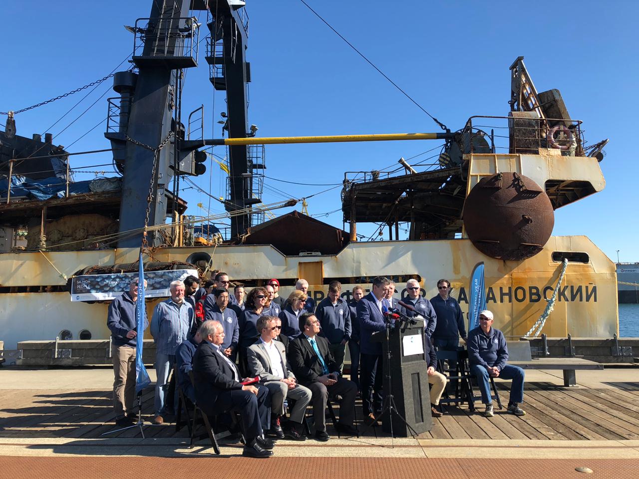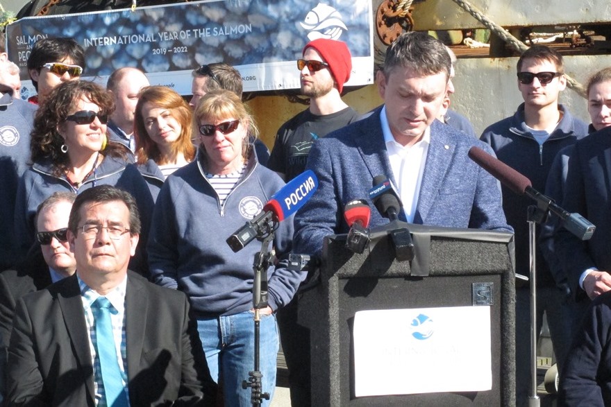 Неудивительно, что встреча «Профессора Кагановского» прошла на высоком официальном уровне – отметить достижения международного сотрудничества прибыло руководство российской рыбохозяйственной науки: директор ВНИРО Кирилл Колончин и его заместитель-руководитель ТИНРО Алексей Байталюк, представитель международного Фонда Тихоокеанского лосося Брайан Ридделл, спецпредставитель Росрыболовства в Канаде Тимур Таиров, директор проекта Международный год лосося Марк Сондерс. В мероприятии также принял участие один из крупнейших мировых специалистов по лососям, почетный ученый по рыболовству и океану канадский профессор Ричард Бимиш, исполнительный директор НПАФК Владимир Радченко, которые внесли значительный вклад в организацию экспедиции.
