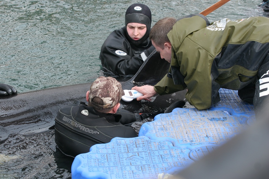 Ведущие специалисты Российской академии наук, Дальневосточного федерального университета, Всероссийского научно-исследовательского института рыбного хозяйства и океанографии, его Тихоокеанского филиала, а также Центра океанографии и морской биологии проводят обследование состояния здоровья и условий содержания косаток и белух в бухте Средней Приморского края. В ходе обследования отобраны пробы крови для клинического и биохомического анализа, пробы воды и рыбы для корма.