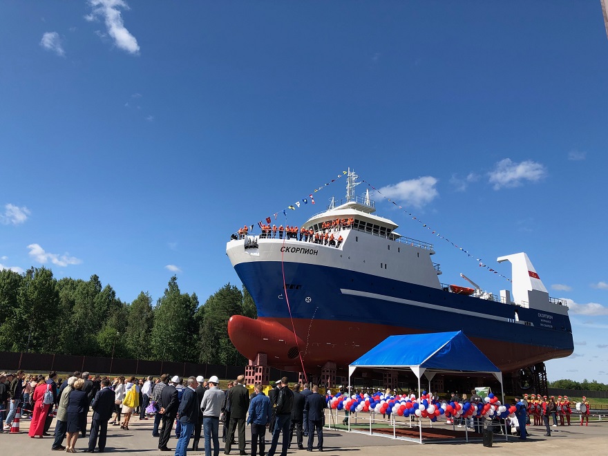 10 июля на Ленинградском судостроительном заводе «Пелла» был торжественно спущен на воду рыболовный морозильный траулер «Скорпион» для мурманской рыбодобывающей компании. В мероприятии приняли участие министр сельского хозяйства России и руководитель Росрыболовства, генеральный директор ОАО «Пелла» Герберт Цатуров, исполнительный директор ГК «ФЭСТ» Юрий Паршев. Строительство судна на российских верфях стало возможно благодарят механизму господдержки - инвестиционным квотам.