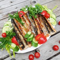 Скумбрия промаринована. Решетку необходимо смазать растительным маслом. Уложить скумбрию на решетку.