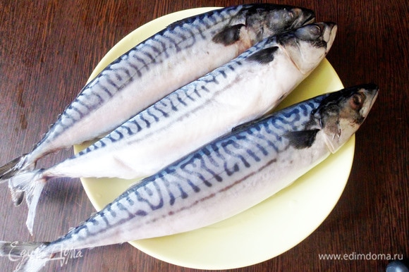 Для приготовления нужно выбрать правильную скумбрию с черной спинкой, синими узорами и светлым брюшком. Рыба должна быть без повреждений. Замороженную скумбрию разморозить, выпотрошить, удалить голову, хвостик, плавники и хорошо промыть.