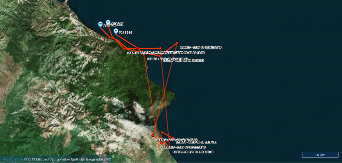 Как сообщает пресс-служба ВНИРО, согласно последним данным со спутниковых меток, установленных на животных, три косатки – Зоя, Тихон и Гайка, выпущенные 6 августа, двигаются в сторону Шантарских островов.