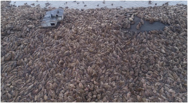 Смещение ледовой кромки за 200 м. глубины и ее длительное отсутствие вынуждает моржей в большом количестве выходить на береговые лежбища, где их численность может варьировать от нескольких тысяч до нескольких десятков тысяч. На берегу моржи подвергаются различным факторам беспокойства, что вызывает частые панические сходы в воду, во время которых звери давят друг друга. Ввиду этого в 2019 г. среди погибших животных преобладали детеныши первого года жизни и самки, достигшие половой зрелости.