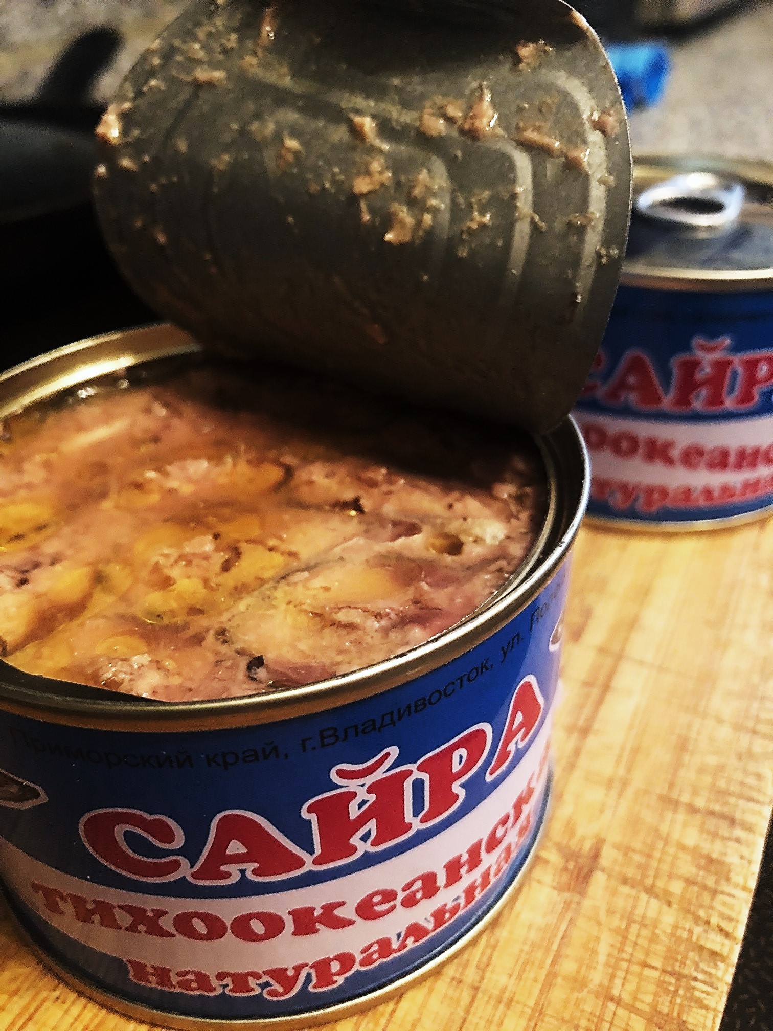 - сайра, консервированная в масле или собственном соку - 3 банки;