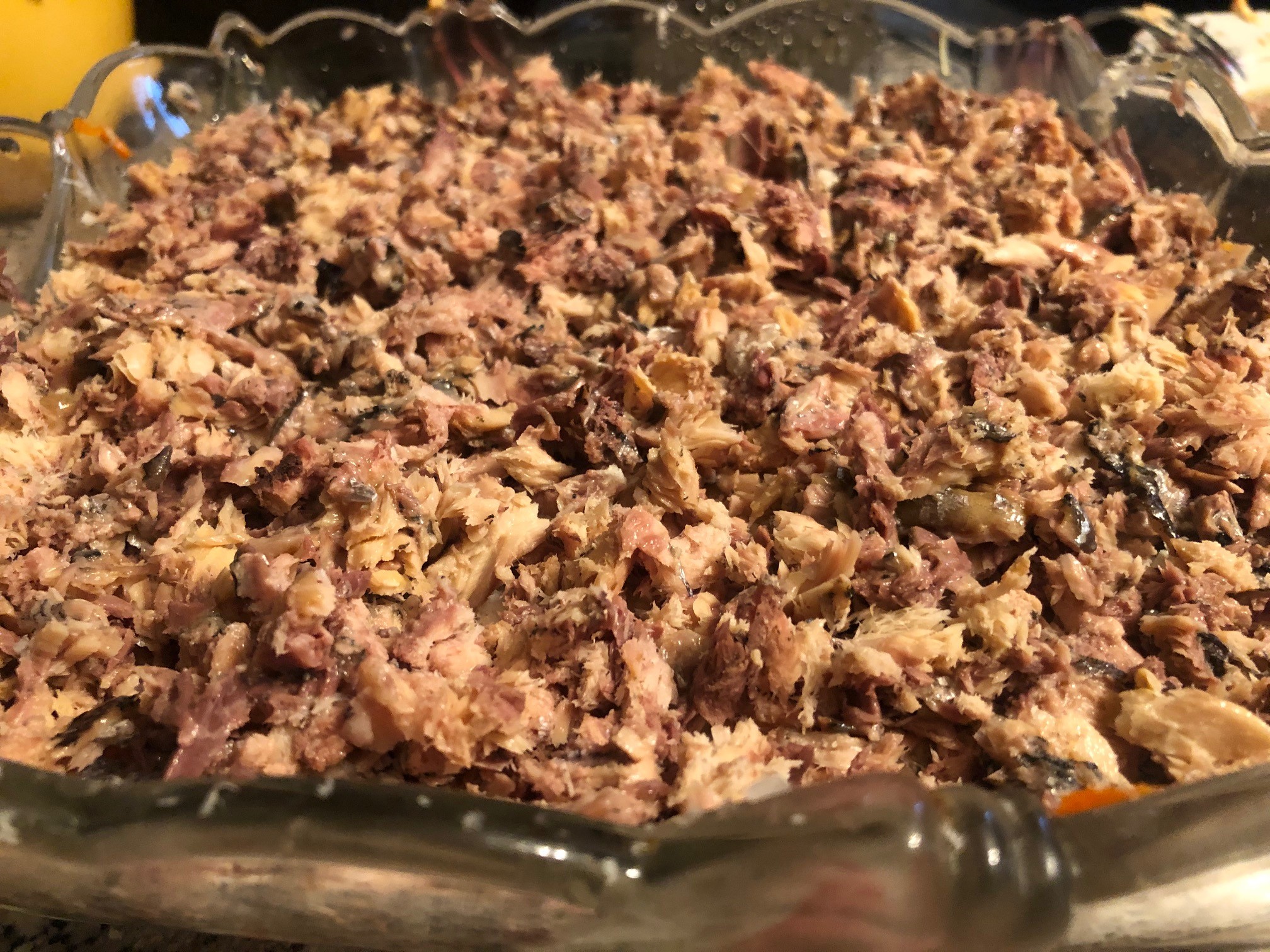 Первым делом нужно отварить картофель, морковь и яйца. Отваренные продукты остудить и почистить. Рыбу предварительно достаем из банок, вынимаем имеющиеся косточки и разминаем ее вилкой.